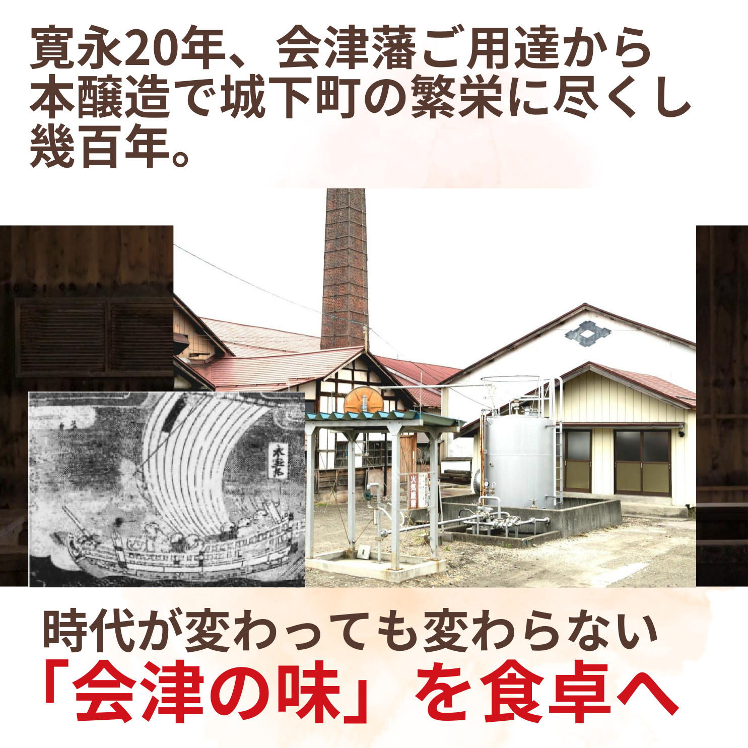 Since the Kanei period, we have been operating a brewery in Aizu, an area blessed with cold winters and hot, humid summers, making it the perfect place for brewing. We deliver soy sauce that features a deep aroma, a refreshing, sharp taste, and a clean aftertaste that you will never tire of.