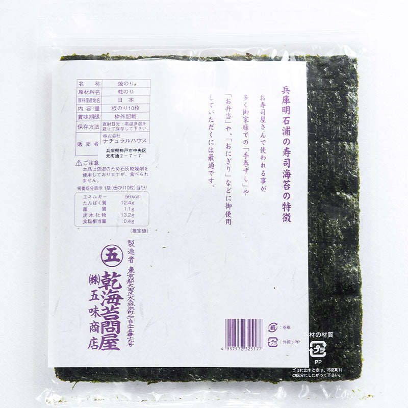 「ナチュラルハウスのお料理上手」江戸前のお寿司屋さんでも使われる事が多い明石浦の海苔。素材の良さがロングセラーの秘密。