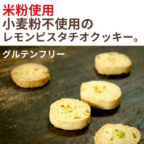 【原材料】米粉(国内製造)、アーモンドパウダー、卵、甜菜糖、米油、レモン果汁、レモンピール、ピスタチオ(一部にアーモンド、卵を含む)
